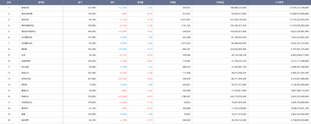 연기금의 자금이 코스닥 시장으로 유입될 경우, 유동성과 재무 안정성을 갖춘 시가총액 상위 20개 종목이 포트폴리오에 우선적으로 편입될 가능성이 매우 높습니다. 연기금은 안정적인 수익을 추구하므로, 검증된 대형주에 투자하는 경향이 있기 때문입니다. 특히 각 업종의 선두 기업인 알테오젠(바이오), 에코프로비엠(2차전지), 레인보우로보틱스(로봇/AI) 등은 수급 개선의 가장 큰 수혜가 예상됩니다. 이들은 이미 시장에서 기술력과 성장성을 인정받고 있어 기관 투자자들의 관심이 더욱 커질 것입니다. 연기금의 투자 확대는 이들 기업의 주가에 긍정적인 영향을 미치고, 시장 전반의 활성화에도 기여할 수 있습니다.
